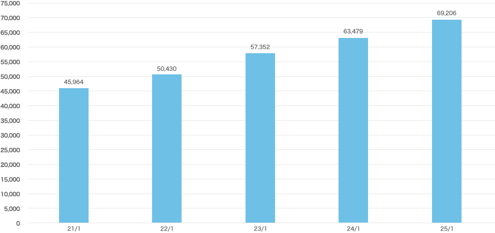 | 決算年月 | 2021年1月 | 2022年1月 | 2023年1月 | 2024年1月 | 2025年1月 |
